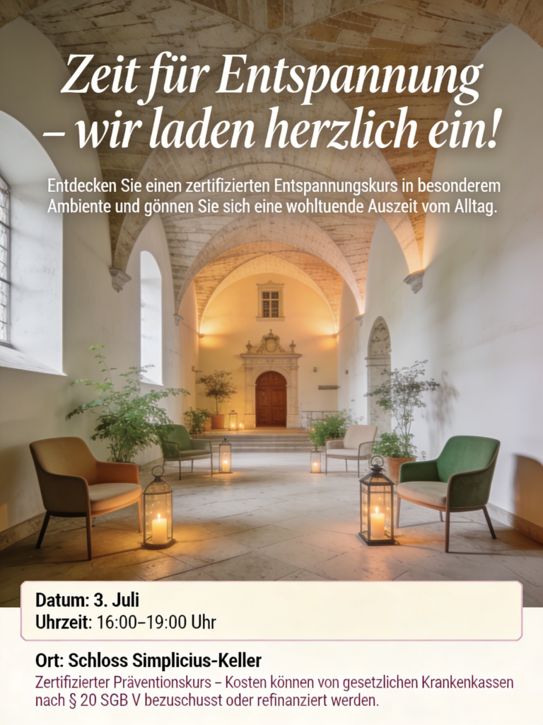 3.Juli Entspannung im Schloss GEISAKurse zertifizierter Gesundheitskurs aller gesetzlichen Krankenkassen